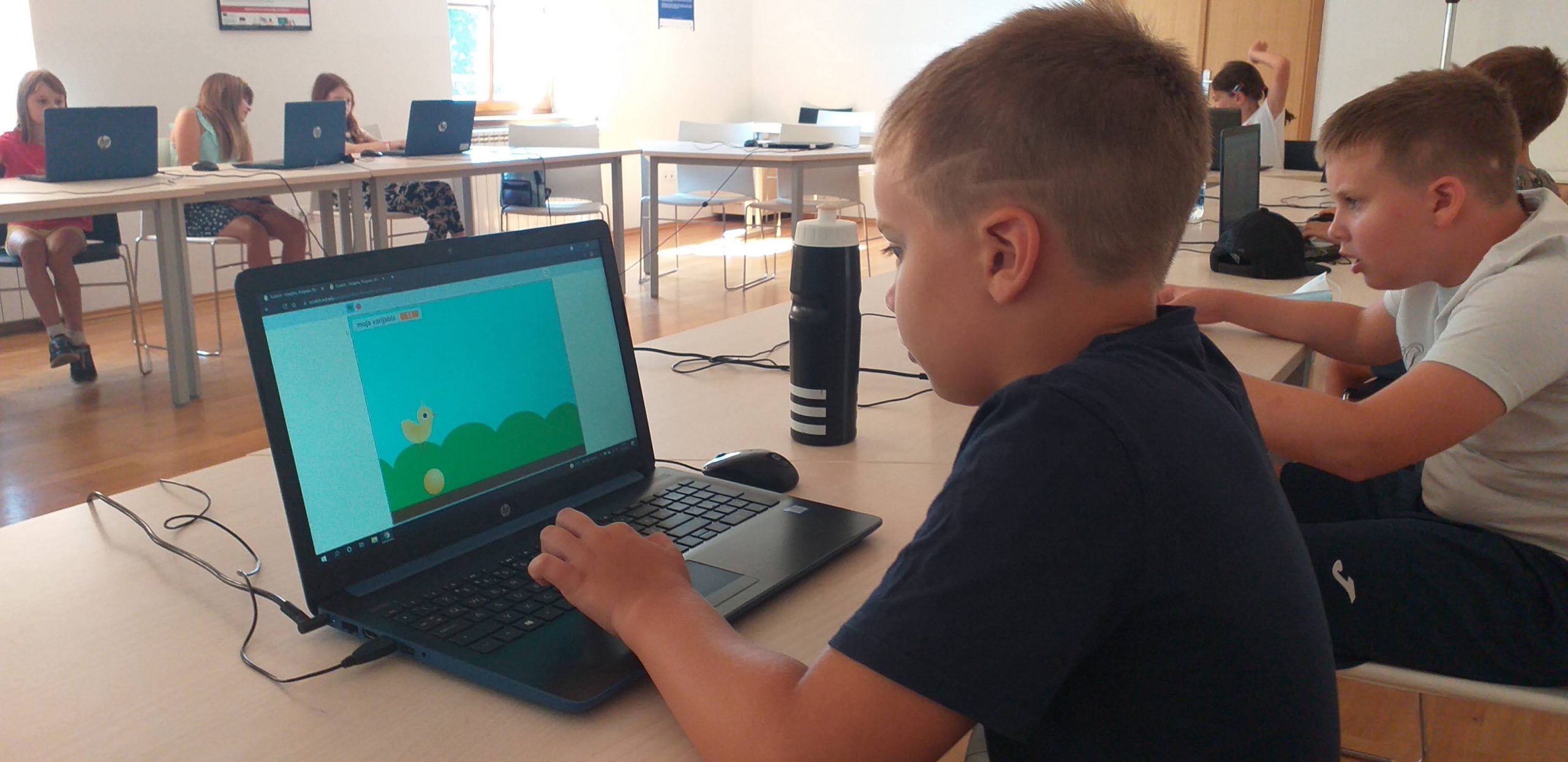 Na radionici je sudjelovalo trinaestero marljivih učenika od 2. do 4. razreda, a cilj radionice bio je na zabavan i jednostavan način uvesti učenike u svijet programiranja. Tijekom tečaja učenici su upoznali grafički programski jezik Scratch i susreli se s mnogim zanimljivim zadatcima. Rješavajući zadatke učenici su naučili o slijedu događaja i petlji. Primjenjujući naučeno riješili su zadane probleme, izradili priče i igru Preskakanja prepreka te se pritom odlično zabavili. U nastavku se nalazi video s učeničkim radovima.