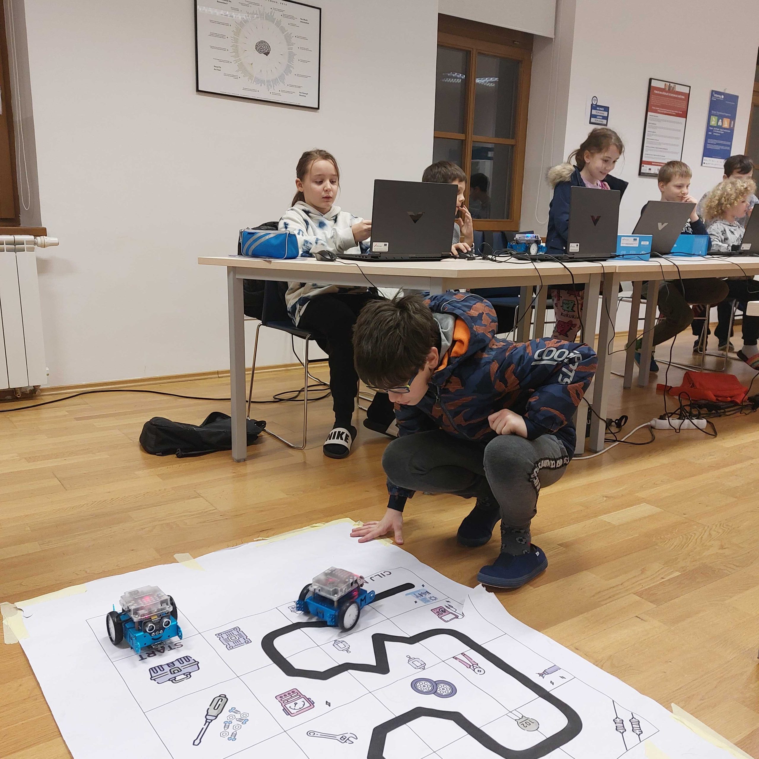 Tijekom radionice učenici su imali priliku zakoračiti u svijet programiranja koristeći vizualni programski jezik Scratch, kroz koji su razvijali logičko razmišljanje, kreativnost i timski rad. U Scratchu su polaznici usvojili vještine kreiranja animacija i priča. Nakon usvojenog znanja i vještina u Scratchu, učenici su se upoznali s osnovama robotike koristeći mBot robote, što im je omogućilo da svoje programe vide u stvarnom, interaktivnom obliku. Kroz različite zabavne zadatke polaznici su naučili pokretati robot, koristiti zvuk, svijetla te senzore za praćenje linije i ultrazvučne senzore za udaljenost.